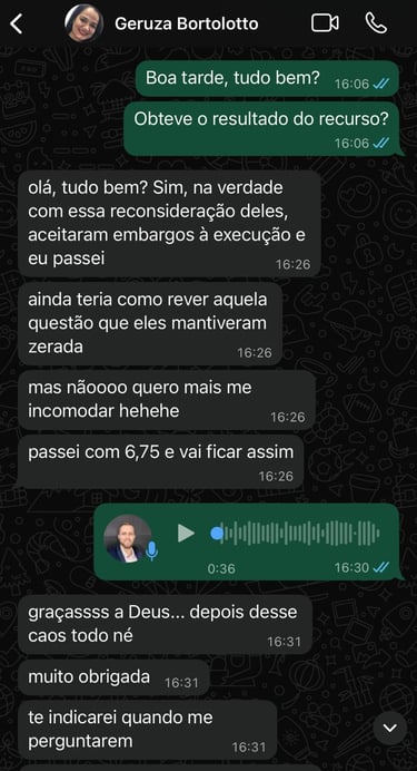 Minha equipe irá analisar se será possível a realização do recurso ou não, à depender da possibilidade de êxito. Caso não compense a elaboração do recurso, você será avisado com antecedência. Lembrando que a ordem cronológica de análises será realizada mediante o envio do comprovante de pagamento, no valor de R$ 100,00, via Pix.